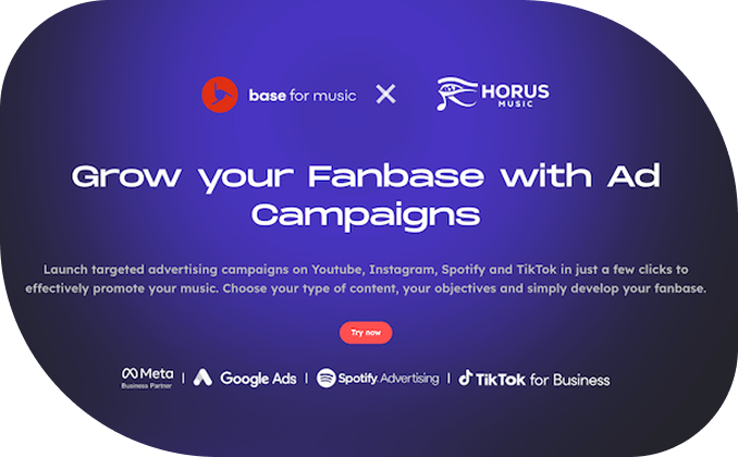 Thanks to our new partnership with Base for Music, Horus Music now gives you access to powerful digital ad campaign tools designed to help you grow your audience.