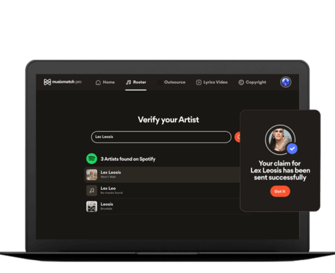 Join 1,400,000+ artists who manage, distribute, and verify their own content using Musixmatch.